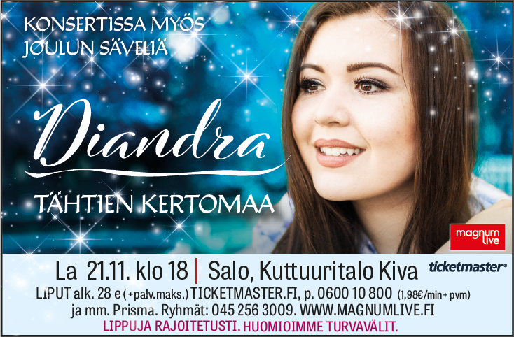 Upeaäänisen, eturivin tähtisolisti Diandran Tähtien kertomaa -konsertteja kuullaan keväällä eri puolilla Suomea. Intiimissä ja kauniissa konserttituokiossa kuulemme mm. suurten maailmantähtien hittejä ja kotimaisia suurien tunteiden iskelmiä sekä Diandran omia kappaleita ja hänelle rakkaita lauluja. Marraskuussa Tähtien kertomaa -konserteissa kuulla myös jouluista musiikkia.