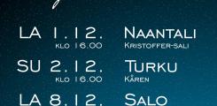 SUMU Big Band tuo svengaavan joulun tänä vuonna Naantaliin, Turkuun ja Saloon. Parikymmentä soittajaa ja huikeat laulusolistit saattelevat kuulijat iloisiin joulutunnelmiin kolmen upean jouluisen konsertin merkeissä Varsinais-Suomen alueella.